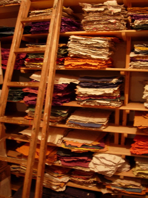 Handmade paper in the storage room.
