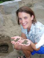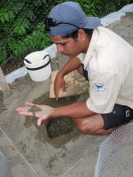 In the afternoon we spoke with a park ranger, Junior Monje, about the sea turtles. He showed us around the nursery (called a vivero) where two collections of turtle eggs had hatched and were ready to be released that night. In two holes there were 60-80 baby turtles, each of them about half the size of a person's hand and encrusted with sand. The park staff collects the sea turtle eggs (usually laid around 3am), waits 45-55 days for them to hatch in the nursery, and releases them back to the ocean. This action is necessary because dogs and racoons will dig up and eat turtle eggs on the beach. Also, some Ticos dig up the eggs and eat them raw, as a delicacy. The park's education and awareness program is designed to stop this practice from continuing, and the nursery was created to assure that the turtles can hatch safely and make it out to sea.