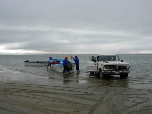 The fishermen loading up the boat to go out and see whales in the lagoon, Guerrero Negro.