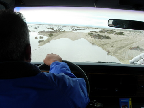Oops - the tide came in while we were out, so on the ride back we drove through 1-2 feet of water for part of the distance. Rodrigo, the driver, is shown here piloting the van through the sea water.