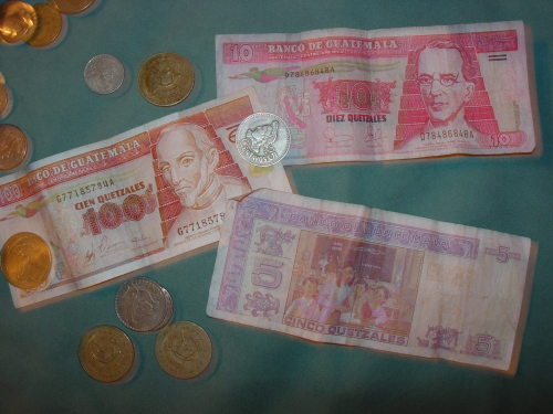 Guatemalan money is the Quetzal. 8 quetzales = $1.00