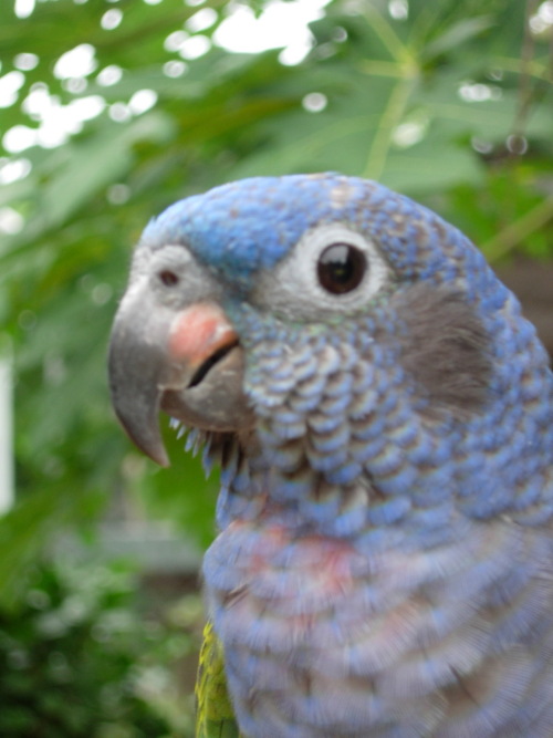Flocks of blue headed parrots often fly overhead around sunset.