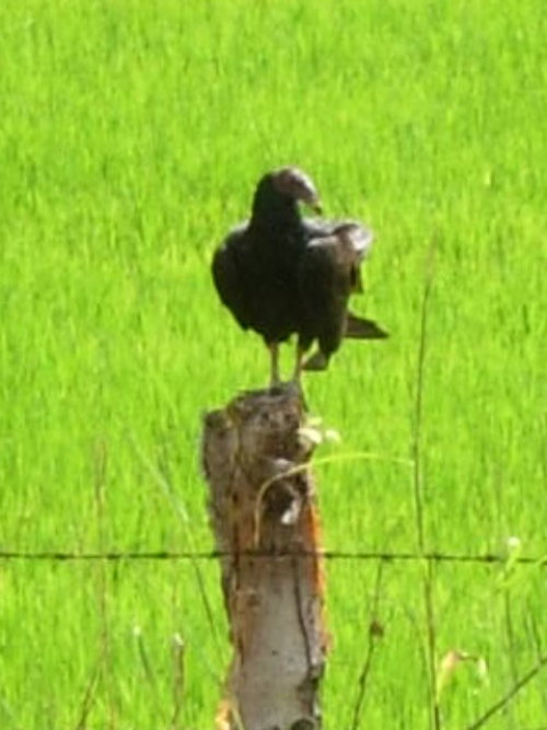 The ever-present vulture. This type of vulture has a black featherless head while the turkey vultures of California have a red head.