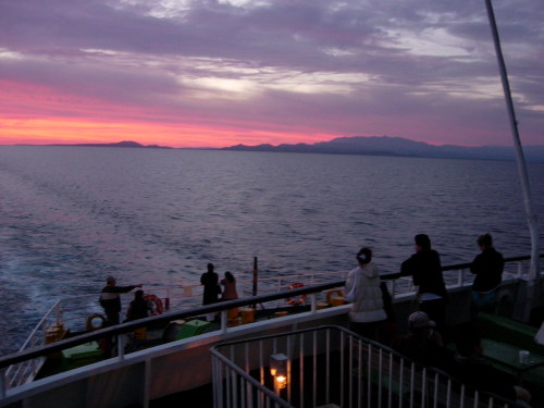 The sun rose at 7am and suddenly we could see dolphins and porpoise jumping in the pink light.