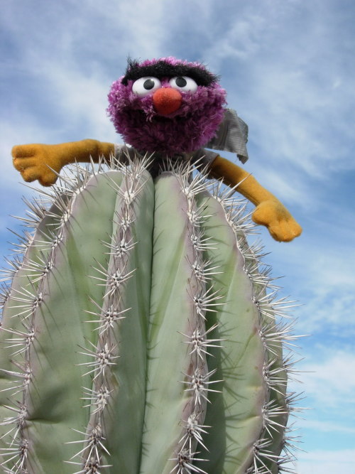 Animal tries out a cactus.