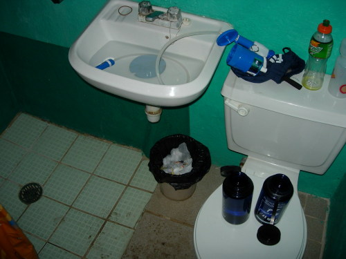 Water filter in the sink - every morning we purify drinking water for the day. In Panama, Nicaragua, and Costa Rica, the water out of the faucet is safe to drink, but in the other countries it is not.
